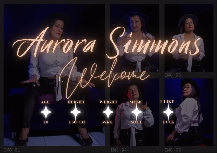Aurora est l’élégance avec un feu intérieur. Une femme intelligente, douce, sociable et séduisante à la fois. Elle ne travaille plus comme assistante dentaire et profite désormais de son temps, de sa maturité et de sa liberté.